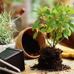 • Transplant if roots are growing through the drainage holes or over the pot edge. Pick up some new larger trend-setting colored pots to perk up your décor. Or, if you don’t want to move into a larger pot, untangle the roots and cut back by 1/3, scour the pots and replant with new soil.